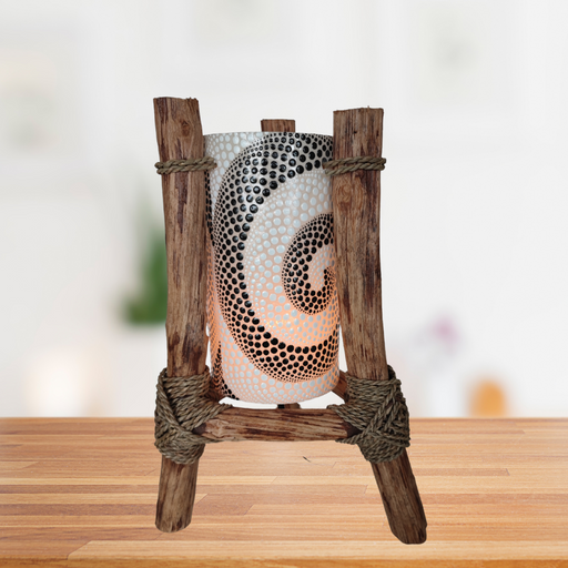 Lampe artisanale diffuseur de parfum en feuilles de coco. Lampe coco à poser. Avec un variateur pour créer différentes ambiances de diffusion et un...